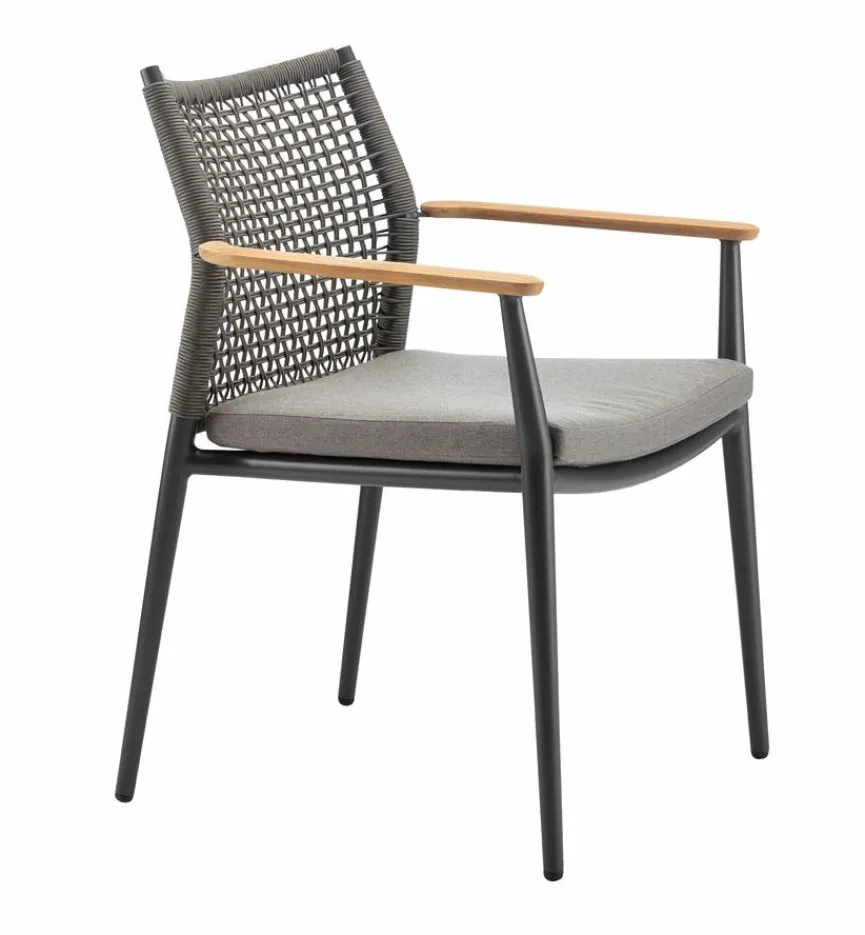 Leicht, strapazierfähig und langlebig – diese Eigenschaften machen die neue Generation von Gartenmöbeln aus Polyester Rope und Aluminium aus. Das Seilgeflecht sieht nicht nur trendig aus, sondern sorgt für eine gleichmäßige Verteilung des Gewichts des Sitzenden und schließt somit ein Verformen aus. Aufgrund der porenfreien, glatten Oberfläche der beiden Materialien ist das Gartenmöbel leicht durch Abwischen mit klarem Wasser zu reinigen. Sowohl Aluminium als auch Polyester Rope sind besonders robust und bereiten Ihnen viele Sommer lang große Freude.