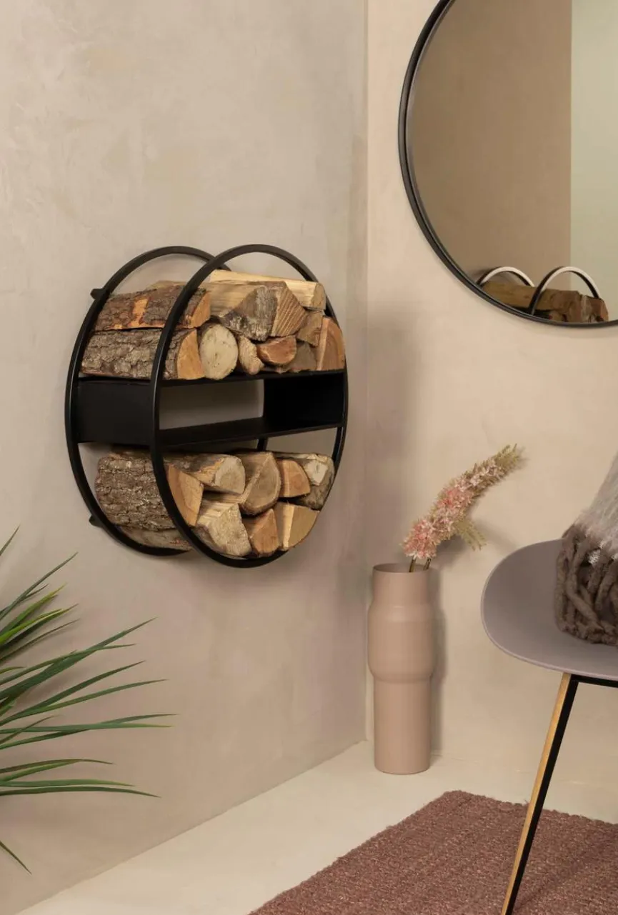Der Feuerholzsammler Timber aus dem Hause Spinder Design ermöglicht Ihnen das ordentliche Verwahren von zahlreichen Holzscheiten. So sind Sie dank des Kaminholzregals perfekt für kalte Tage vorbereitet. Außerdem überzeugt der Feuerholzsammler Timber durch sein ebenso dunkles wie rundes Erscheinungsbild, das für zeitgemäße Akzente sorgt.