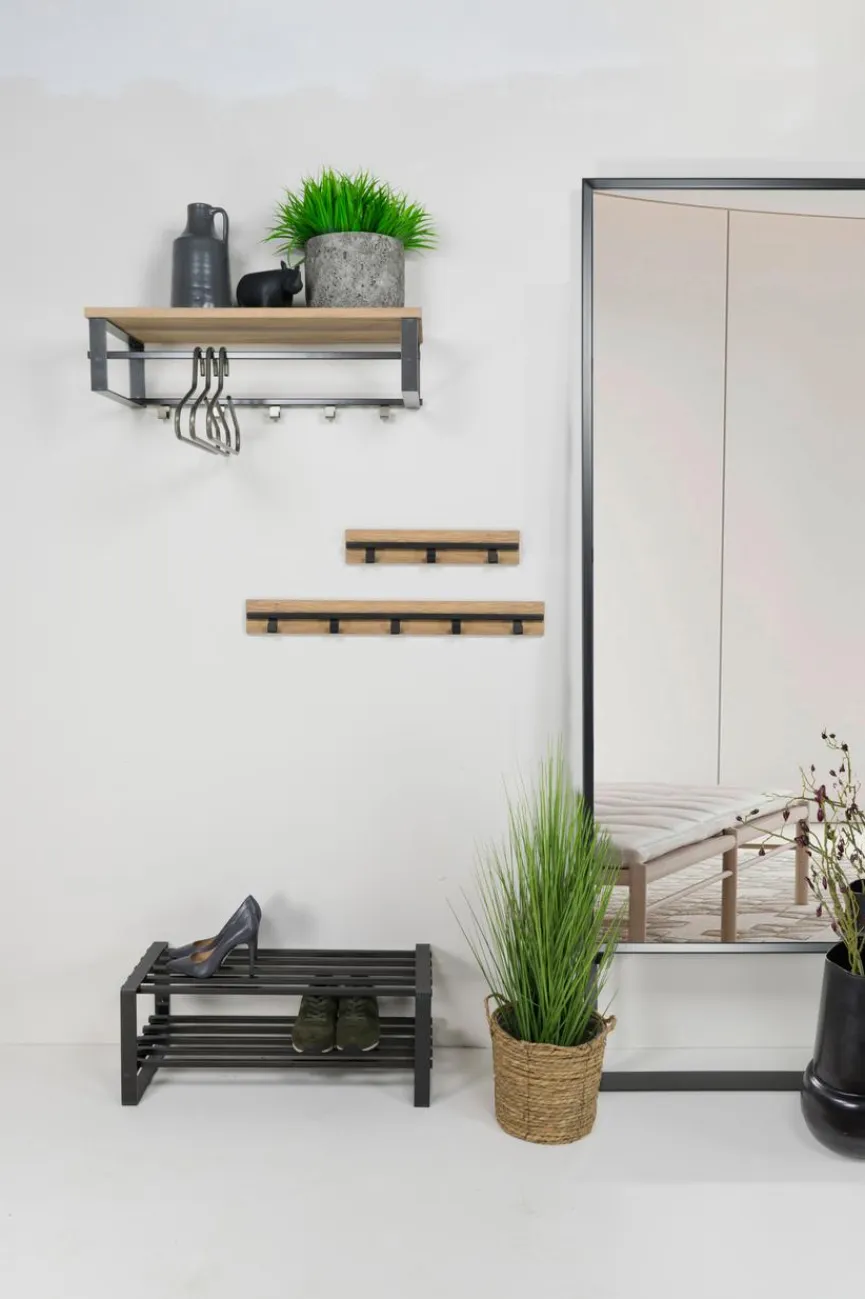 Die Hakenleiste Rumo bietet praktischen Platz zum Aufhängen von Jacken, Mäntel, Taschen oder anderen Dingen. Neben der hohen Funktionalität begeistert sie auch durch ein attraktives Design. Mit der Halterung aus Massivholz und der Leiste aus Metall ist die Hakenleiste Rumo optisch sehr ansprechend.