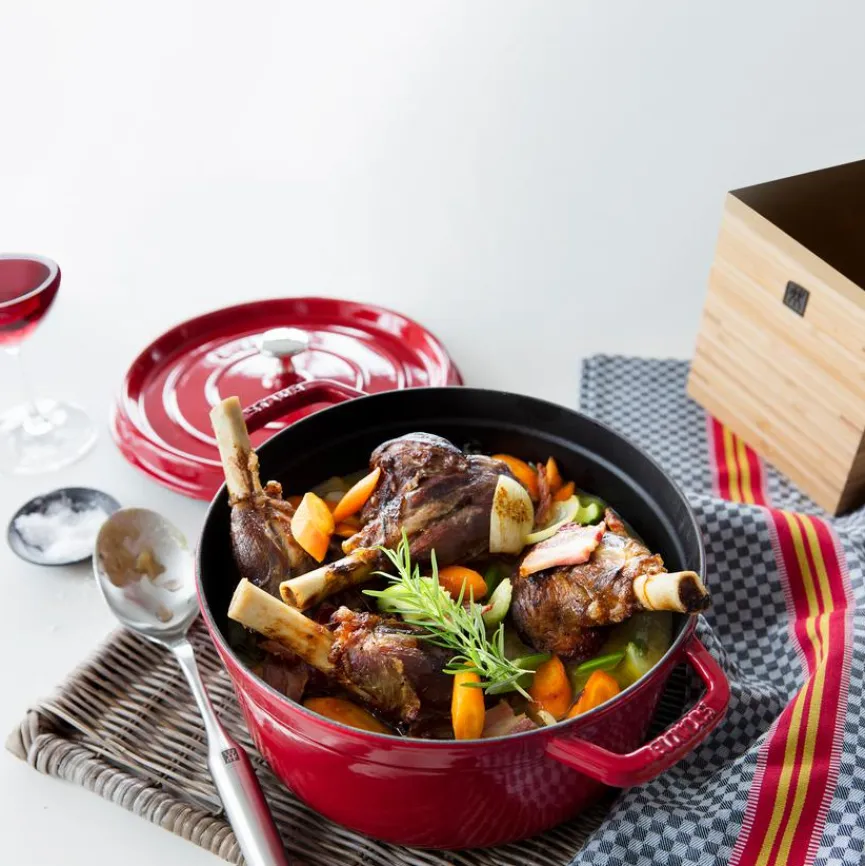 Mit dem Schmortopf La Cocotte 24 cm von Staub gelingen Ihnen viele verschiedene Gerichte. Dank der Emaillierung brennt im Topf nichts an, außerdem ist er sehr kratzfest und einfach zu reinigen. Der Schmortopf La Cocotte 24 cm von Staub ist übrigens für alle Herdarten geeignet.