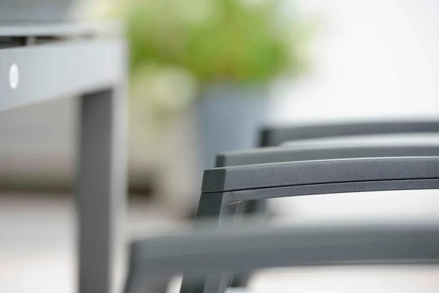 Formschönes Design trifft Stabilität und Langlebigkeit – Gartenmöbel aus Aluminium mit Textilene begleiten Sie ein Leben lang. Das wunderbar leichte, pulverbeschichtete Aluminiumgestell geht eine harmonische Verbindung mit wetterfestem, luftdurchlässigem und besonders hautfreundlichem Kunststoffgeflecht aus hochwertiger Kunststofffaser ein. Dieses formstabile Gewebe ist nicht nur UV- und sonnenölbeständig, sondern auch wunderbar pflegeleicht, wasserabweisend und besonders schnell trocknend. Das Ergebnis ist ein modernes Möbelstück mit hervorragendem Sitzkomfort, das Ihnen lange Freude bereitet.