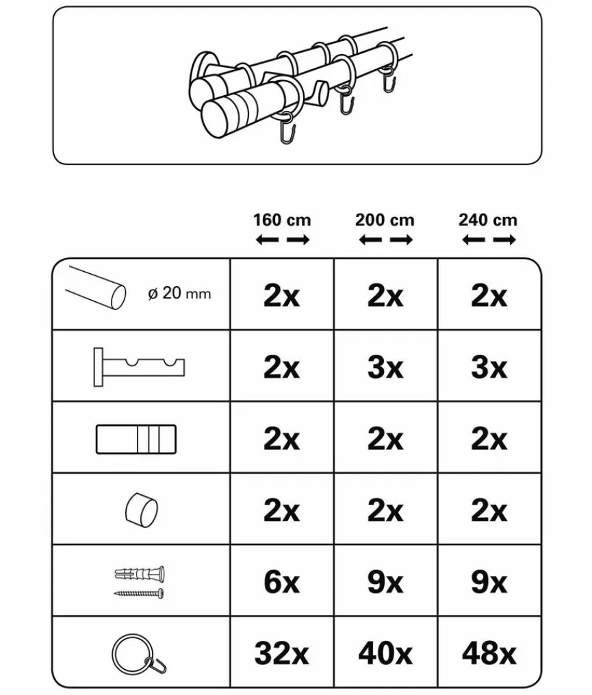 Mit der Stilgarnitur Zylinder 160 cm lassen sich kinderleicht kreative Ideen verwirklichen, denn die Doppelstange erlaubt es Ihnen, gleich zwei Vorhänge miteinander in Reihe zu kombinieren. Egal, ob Sie sich vor neugierigen Blicke schützen wollen oder einfach persönliche Akzente setzen möchten, die Stilgarnitur Zylinder 160 cm sorgt für müheloses Gleiten. Besonders gut passt sie zu modernen und reduzierten Wohnkonzepten.