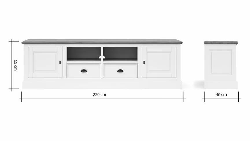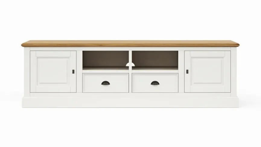 Mit dem Lowboard Barreiro schaffen Sie ein stilvolles Plätzchen für Ihr TV-Gerät. Charmante Profilierungen und herrlich dekorative Muschelgriffe sind die prägenden Designelemente dieses geräumig gestalteten Sideboards. In ein Gemütlichkeit ausstrahlendes Wohnzimmer mit Akzenten im freundlichen Landhaus-Look lässt sich das Lowboard Barreiro gekonnt und geschmackvoll integrieren.