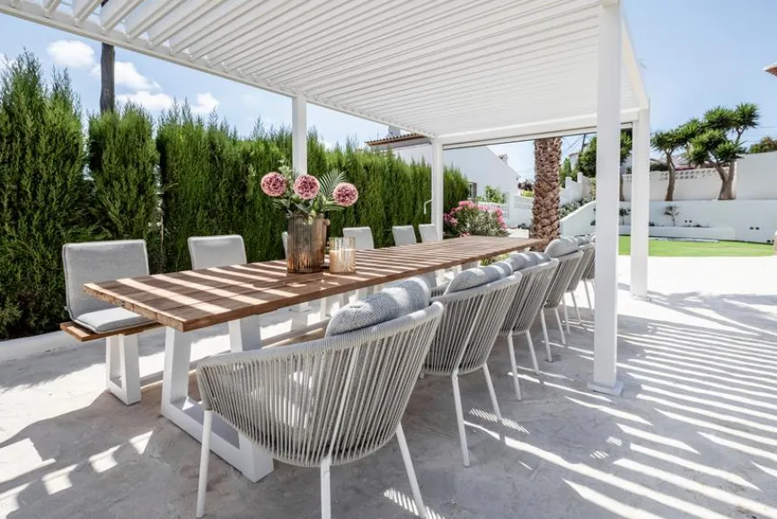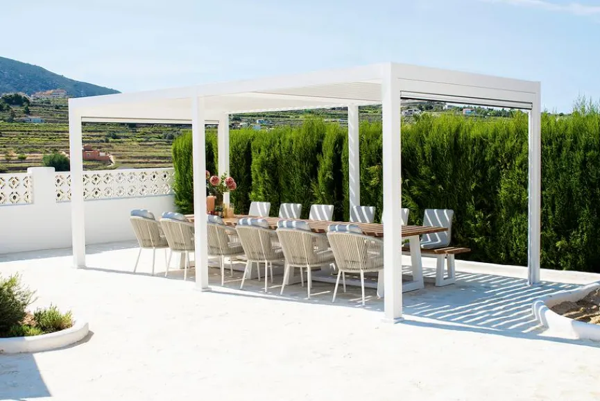 - Mit flexiblen Blenden im Dach ausgestattet, wenn die Blenden geschlossen sind, sind Sie außerdem vor Regen geschützt. Regenwasser wird über die Beine der Konstruktion abgeleitet.