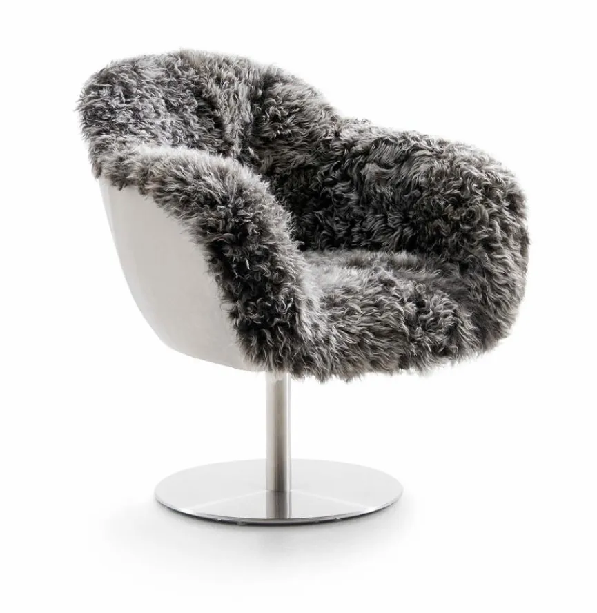 - Korpusbezug aus Leder (Cuba) in grey, Sitzbezug aus Fell (Lamb) in darkgrey, Drehteller Edelstahl