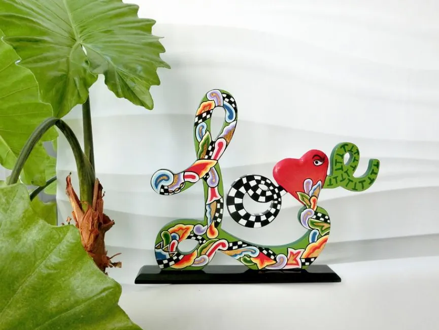 Egal, wo Sie das Deko-Objekt Love platzieren möchten, es verbreitet überall eine klare Botschaft. Das Accessoire sorgt für romantische Stimmung und avanciert zudem sofort zum Eyecatcher in Ihrem Zimmer. Dies schafft das Deko-Objekt Love unter anderem durch viele Farben und ausgefallene Muster.