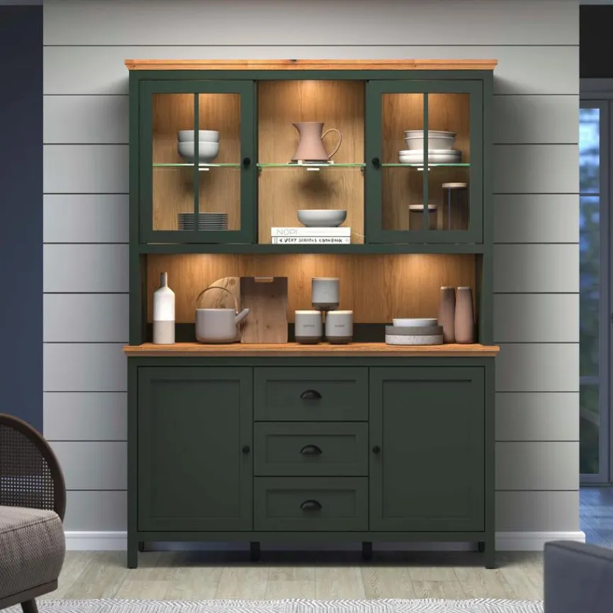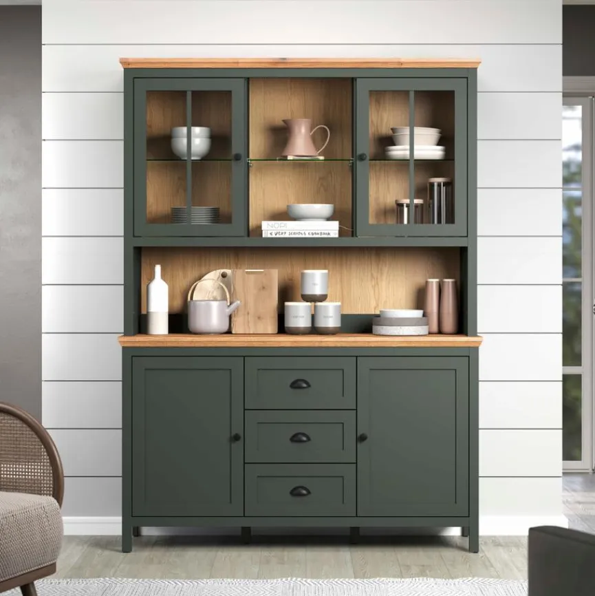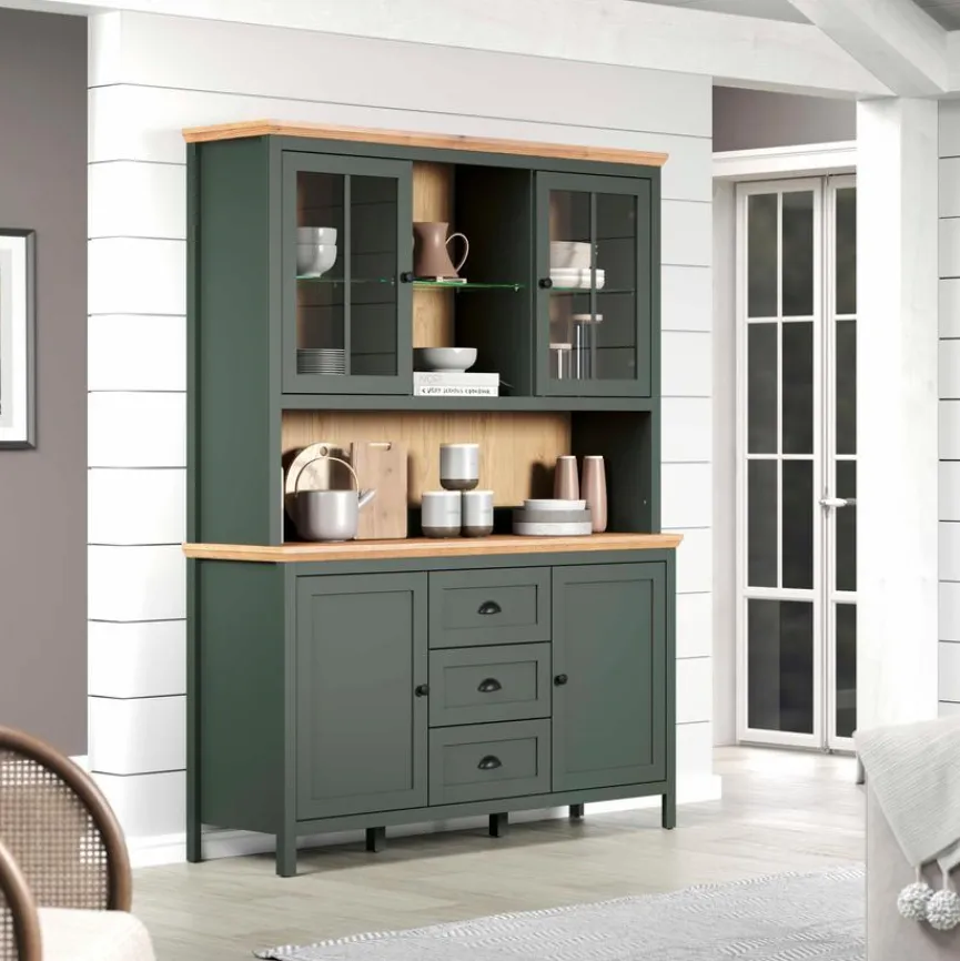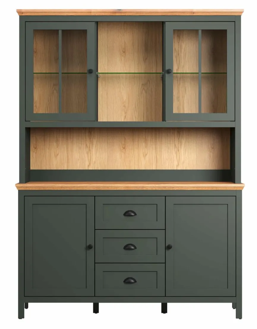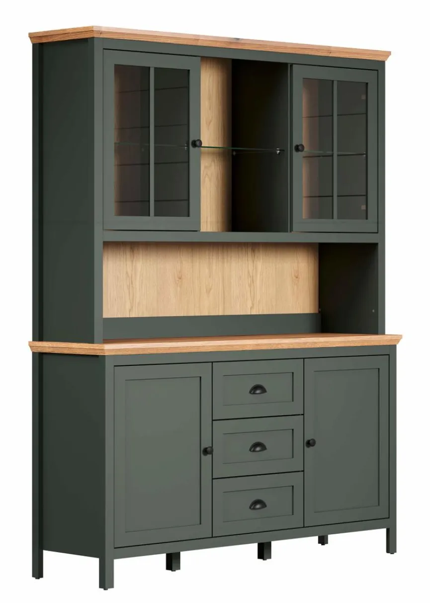 - Korpus aus Holzwerkstoff (Spanplatte) mit hochwertiger Dekorfolie in Tannengrün, Front aus Holzwerkstoff (MDF) mit hochwertiger Dekorfolie in Tannengrün