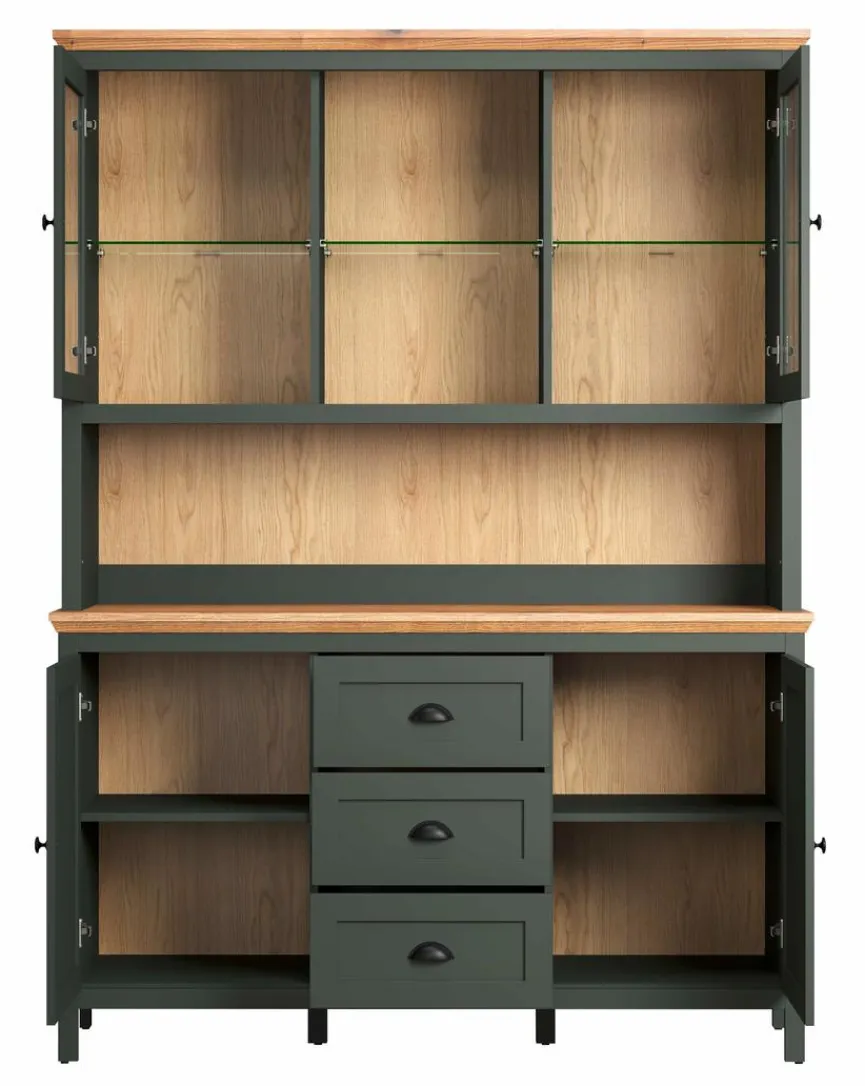 - Mit 4 Türen, 3 Schubkästen, 3 Glaseinlegeböden und 2 Einlegeböden