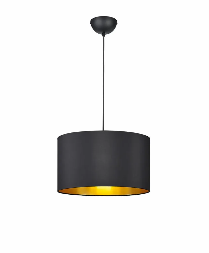 Die Pendelleuchte Hostel der Marke Trio eignet sich wunderbar als schickes Accessoire für die Decke. Bei der farblichen Gestaltung dieser Pendellampe setzt der Hersteller vor allem auf Einheitlichkeit, denn die gesamte äußere Oberfläche des Schirmes ist in mattem Schwarz gehalten. In Kombination mit dem inneren, golden Farbton ergibt sich bei der Pendelleuchte Hostel von Trio ein gelungenes Gestambild.