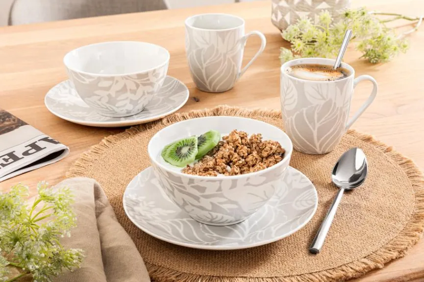 - Je 2 Dessertteller Ø 20 cm, Müslischalen Ø 14,5 cm, Kaffeebecher 420 ml