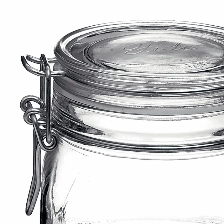 In der luftdicht verschließbaren, hygienischen Vorratsdose Fido 500 ml von Wellco lassen sich eingelegte, eingekochte und konservierte Lebensmittel aufbewahren. Auch trocken zu lagernde Nahrungsmittel wie Müsli oder Kekse finden in dem schlichten Gefäß Platz. Sie können die Vorratsdose Fido 500 ml natürlich auch mit selbstgemachten Leckereien befüllen, mit einer Schleife versehen und als kleine Aufmerksamkeit verschenken.