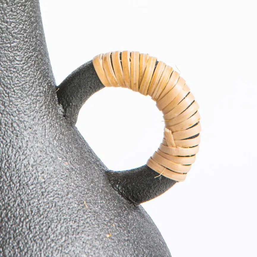 Wenn Sie in Ihrem Zuhause einmal eine Vase für Ihre Blumen benötigen, die mit einem eigenen Charakter für Aufsehen sorgt, sind Sie mit dieser schicken Variante fündig geworden. Die bauchige Blumenvase wird von zwei kleinen Henkeln flankiert, die ihr eine ungewöhnliche Ausstrahlung verleihen. Gekrönt wird die Optik durch die Ummantelung der Griffe mit natürlich aussehendem Rattan.