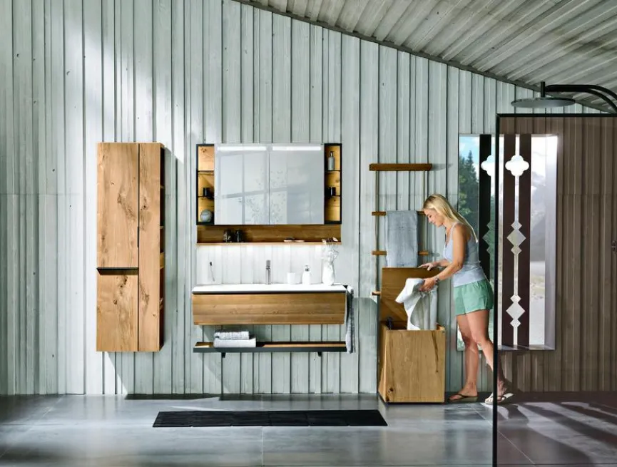 - Mit Waschtischunterschrank mit 1 Schublade, gezinkte Massivholzladen (Eiche) mit verdecktem, leichtgängigem Vollauszug