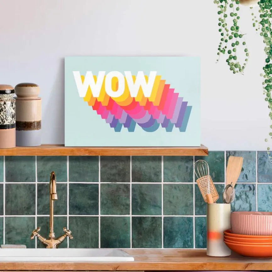 Mit dem Wandbild 20×30 cm Wow der Marke Reinders sorgen Sie für strahlend gute Laune! Dieses einzigartige Deko Bild begeistert mit seiner tollen 3D-Schrift und den leuchtenden Farben. Das Wandbild 20×30 cm Wow eignet sich perfekt, um Ihrem Lieblingszimmer einen lebendigen Touch zu verleihen.