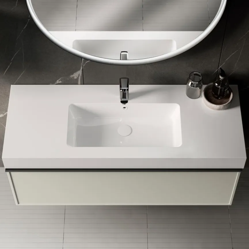 - Inkl. Mineralmarmorbecken in weiß glänzend, Becken mittig. mit Überlauf