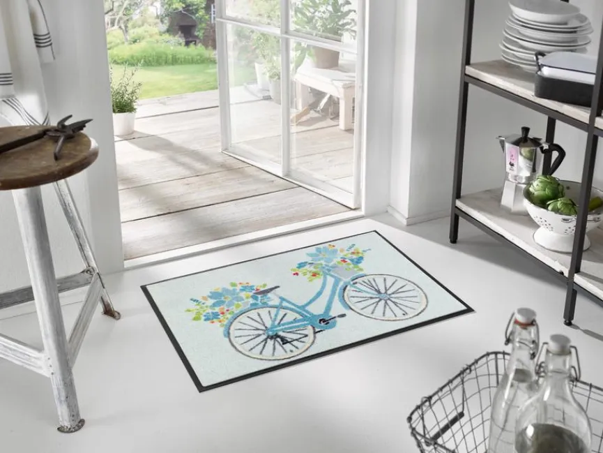 Die Fußmatte Daisy Daisy 40×60 cm von Wash+Dry wirkt sehr einladend und begeistert Gäste durch ihr hübsches Design. Auf der Schmutzfangmatte ist ein Fahrrad zu sehen, das mit Blumen ausgestattet wurde. Auch die freundlichen Farben der Fußmatte Daisy Daisy 40×60 cm versprühen einen positiven Charme.