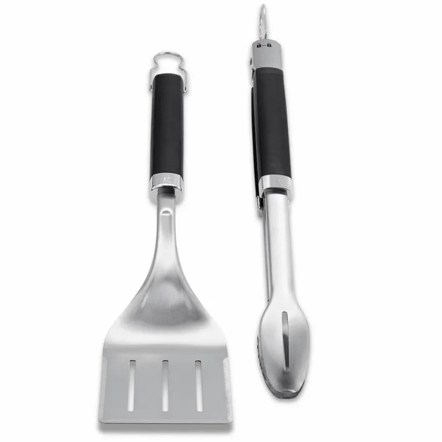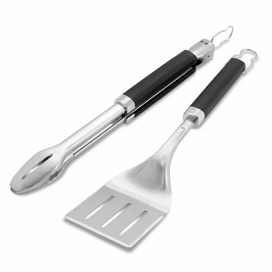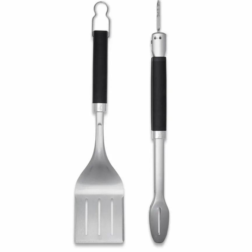 Mit dem Grillbesteck Set 2tlg. der Marke Weber sind Sie optimal vorbereitet, wenn Sie Ihre Lieben mit Köstlichkeiten aus dem Bereich Barbecue verwöhnen möchten. Dank des aus Zange und Wender bestehenden Ensembles geht der Umgang mit Bratstücken, Gemüse und Co. leicht von der Hand. Dazu tragen die Soft-Touch-Griffe am Grillbesteck Set 2tlg. von Weber genauso bei wie das übrige Design der Werkzeuge.