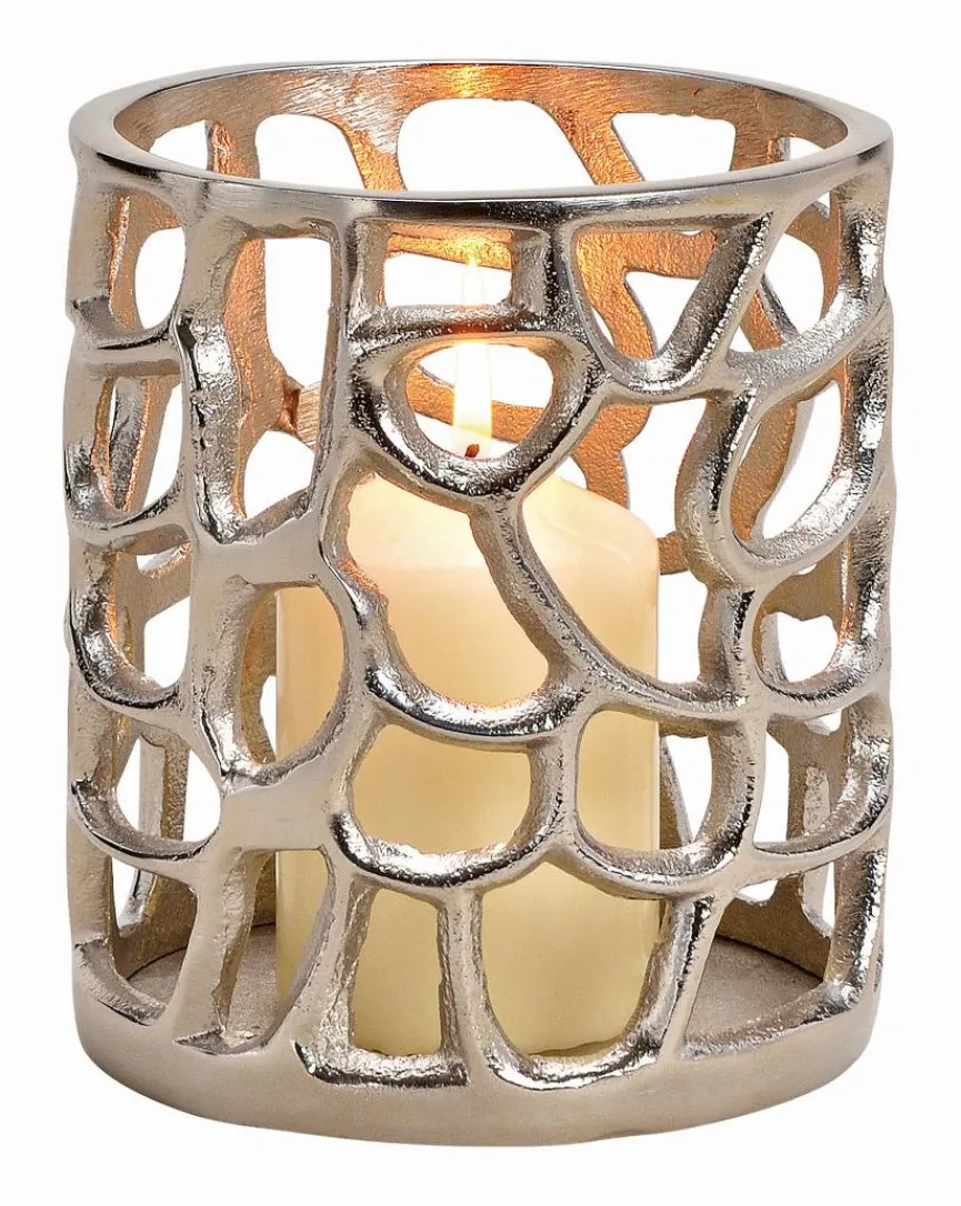 Dieses stilvolle Windlicht Ø 12 cm schafft eine stimmungsvolle Atmosphäre in jedem Raum. Gefertigt aus langlebigem Material, ist es ideal geeignet für Teelichter oder kleine Kerzen. Dank seiner Vielseitigkeit lässt sich das Windlicht Ø 12 cm perfekt in moderne, minimalistische oder gemütliche Wohnstile einfügen und stellt in jedem Wohnbereich eine warme Lichtquelle dar.