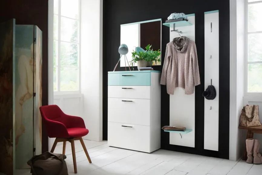 - Garderobe aus Kommode, Spiegel, und 2 Garderobenpaneelen