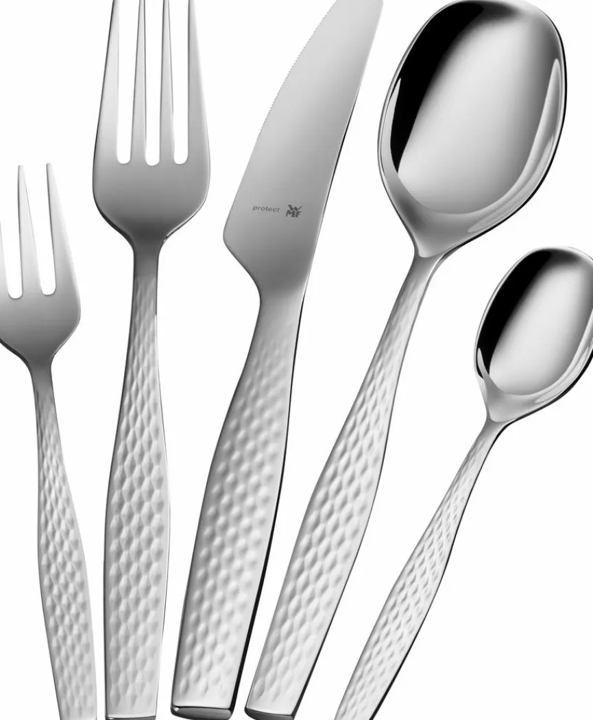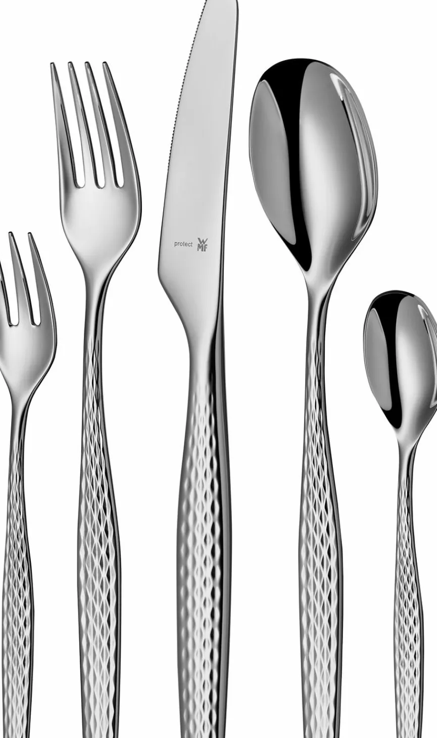 Das Besteck Sentic 30tlg. der Marke WMF zeichnet sich durch ein stilvolles Design und eine hervorragende Qualität aus. Dieses hochwertige Tafelbesteck-Set setzt sich zusammen aus jeweils sechs Menügabeln, Menümessern, Menülöffeln, Kaffeelöffeln und Kuchengabeln. Somit stehen Ihnen mit dem Besteck Sentic 30tlg. von WMF für alle Mahlzeiten des Tages die passenden Utensilien zur Verfügung.