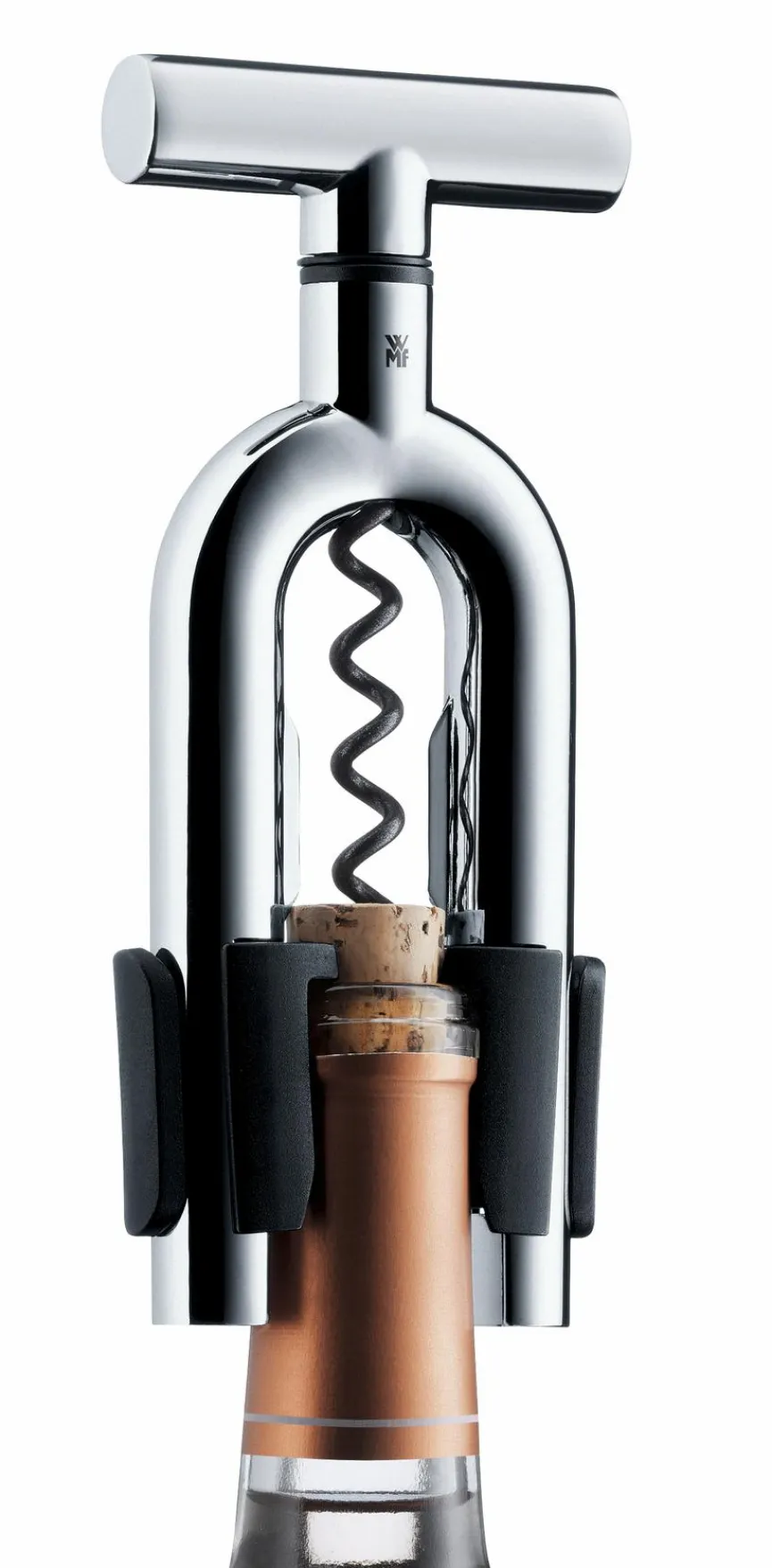 Der Korkenzieher Vino von WMF ist ein patentiertes, vielfach preisgekröntes Produkt. Ein ästhetisches und vor allem funktionales Design zeichnet das nützliche Utensil aus, das gut in der Hand liegt und dessen zweifach beschichtete Spiralschraube mühelos in den zu entfernenden Korken gleitet. Dank des breiten Drehgriffs lassen sich Flaschen ohne großen Kraftaufwand öffnen, sodass der Korkenzieher Vino jeden Haushalt bereichert.