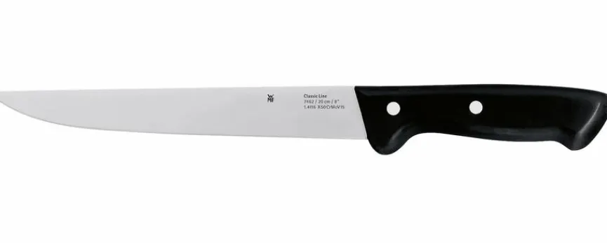 Das Fleischmesser Classic Line 20 cm der Traditionsfirma WMF eignet sich mit seiner langen Klinge vorzüglich zum Schneiden und Tranchieren. Dank des präzisen Schliffs erreicht es eine überragende sowie lang anhaltende Schärfe. Sein ergonomisch geformter Griff ist aus hochwertigem Kunststoff gefertigt und fugenlos vernietet. Mit einem exakt ausbalancierten Gewicht von Klinge und Griff liegt das WMF Fleischmesser Classic Line 20 cm hervorragend in der Hand.