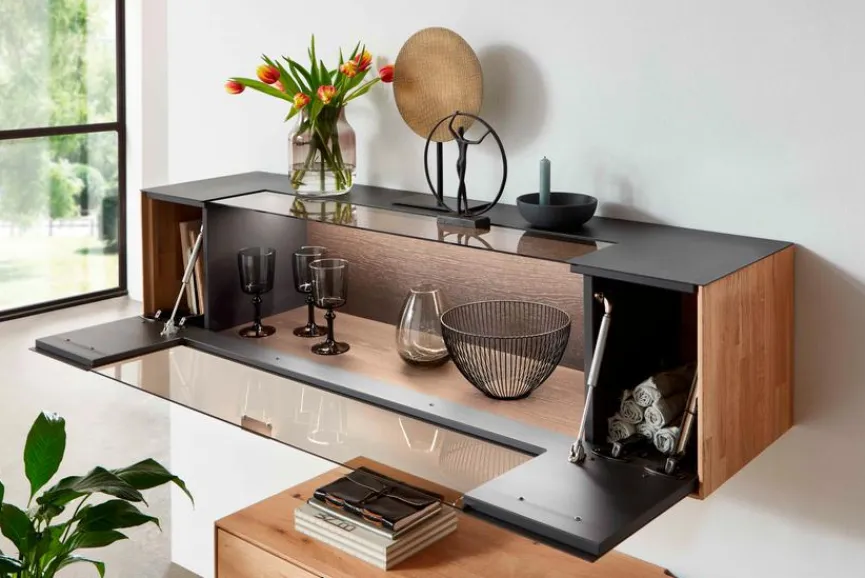 Das Wandregal WM 2140 steht für einen ausdrucksstarken, modernen Look, der zum Beispiel sehr gut in ein Umfeld im gemütlichen Alpin-Stil passt. Eine Übereck-Verglasung verleiht dem Wandboard modernen Chic und Raffinesse. Kombinieren Sie das Wandregal WM 2140 am besten mit den anderen Möbeln aus dieser Reihe!