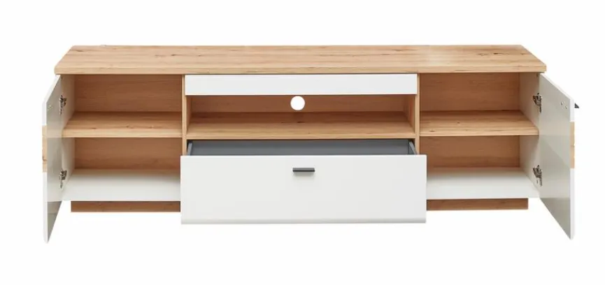 - Korpus aus Holzwerkstoff (MDF) in matt Weiß bzw. Artisan Eiche Nachbildung