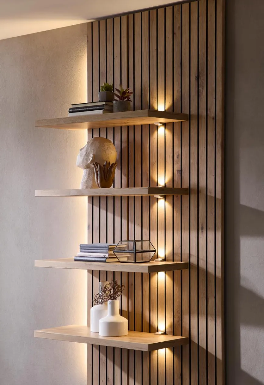 - Wohnwand besteht aus TV-Lowboard, Wandpaneel, Ablageböden