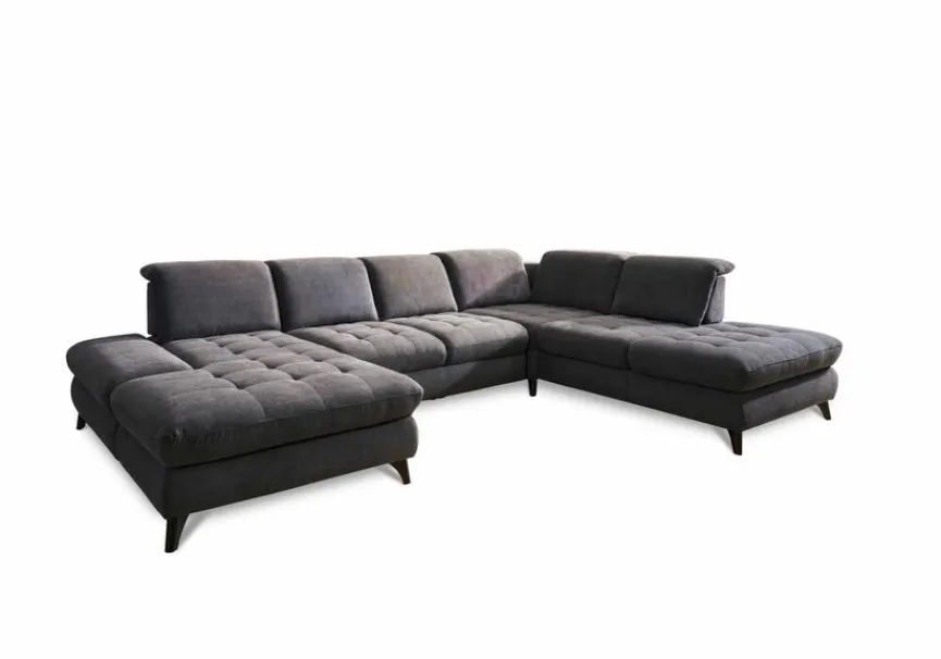 - Wohnlandschaft besteht aus Longchair mit Armlehne links, 2-Sitzer ohne Armlehne, Ecke, Abschlusselement rechts
