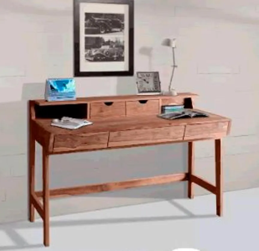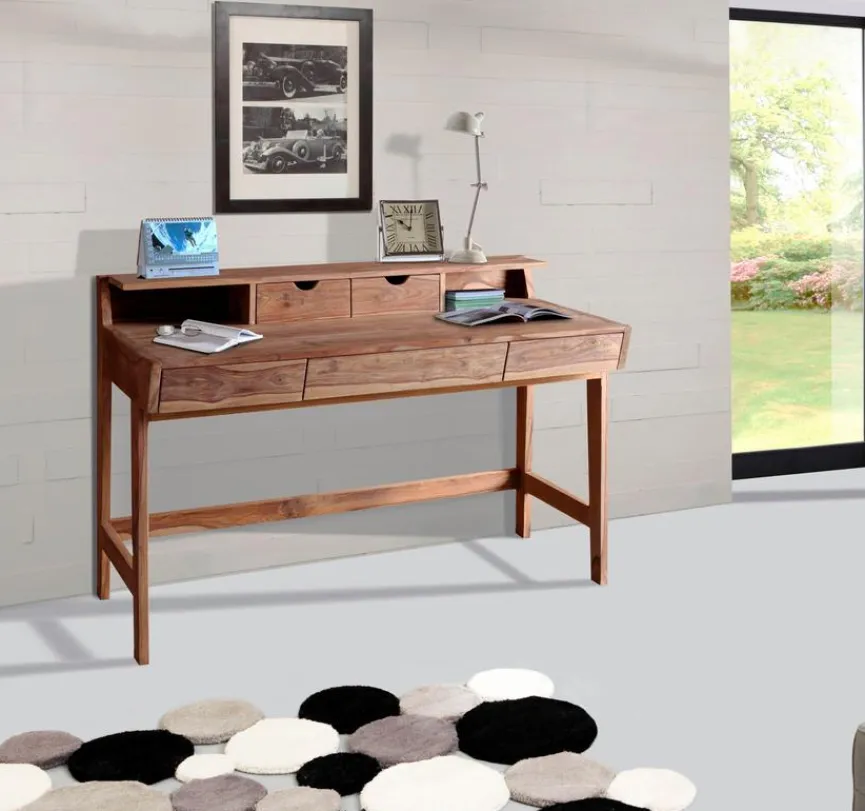 Der Schreibtisch Yoga von WOLFMÖBEL erinnert in seiner Gestaltung an klassische Sekretäre, die sich wieder großer Beliebtheit erfreuen. Viel Stauraum und Ablagemöglichkeiten für Unterlagen oder Schreibutensilien bietet Ihnen der praktische Aufsatz. Dank seiner Fertigung aus massivem, besonders hartem Sheesham-Holz ist der Schreibtisch Yoga aus dem Hause WOLFMÖBEL sehr robust und langlebig.