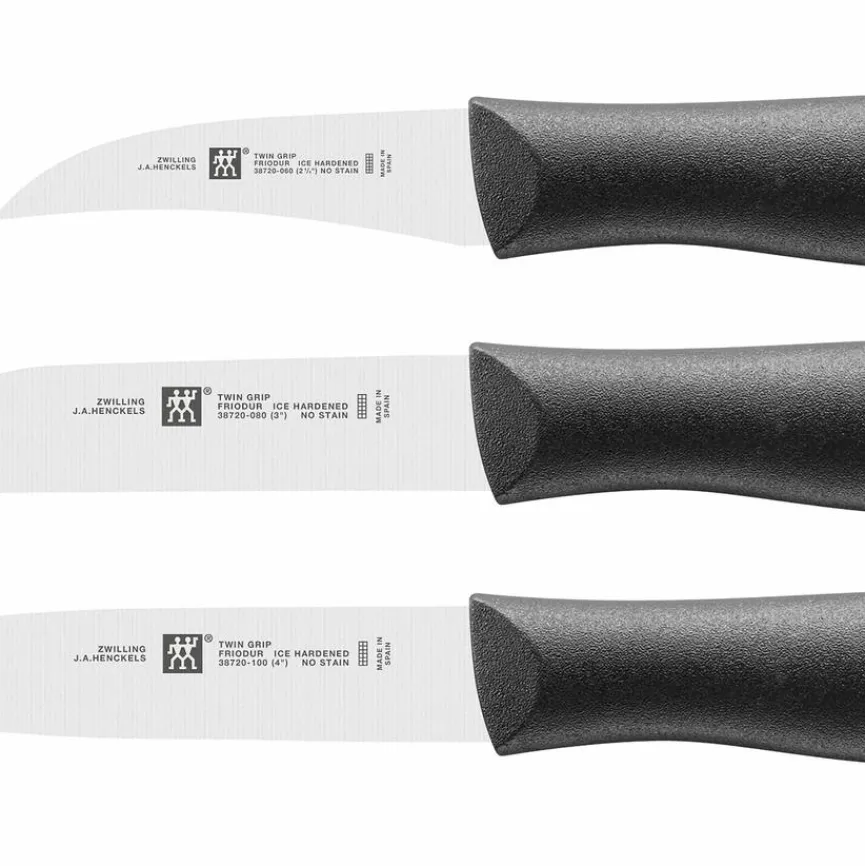 Das hochwertige Messerset Twin Grip 3tlg. von Zwilling besteht aus je einem Schäl-, einem Gemüse- und einem Spick- und Garniermesser. Ein ergonomisch geformter Griff garantiert eine sichere Handhabung der Messer. Dank robuster Klingen aus Stahl bietet das Zwilling Messerset Twin Grip 3tlg. eine herausragende Schärfe.